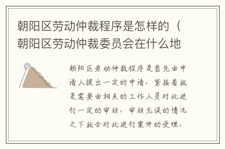 一、朝阳区劳动仲裁程序是怎样的?
