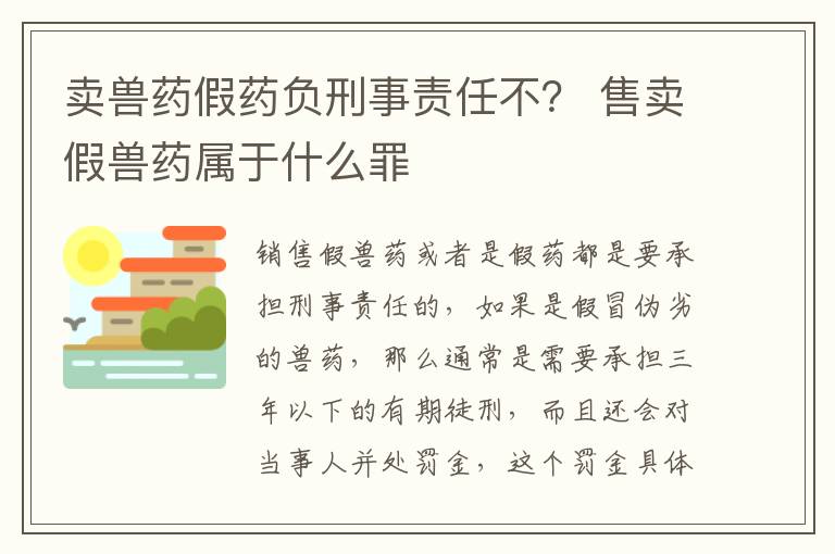 虽然兽药它不同于人吃的药,但是兽药如果是假冒伪劣的,而且当事人明知他是假冒伪劣的兽药还要进行销售,那么肯定是犯罪的行为,这个犯罪的行为通常最轻也是在拘役。而且要对当事人并处罚金,如果是情节稍微严重,比如说给他人造成了重大的损失,那么通常是在3~7年的有期徒刑。