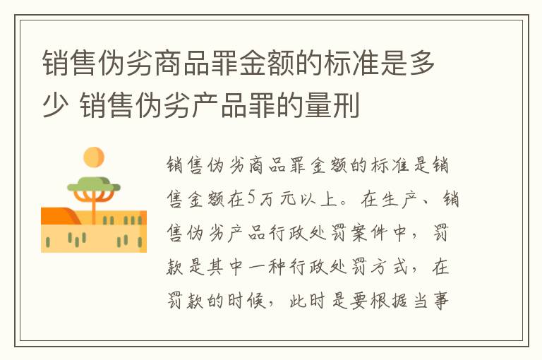 生产者、销售者在产品中掺杂、掺假,以假充真,以次充好或者以不合格产品冒充合格产品,销售金额五万元 以上不满二十万元的,处二年以下有期徒刑或者拘役。