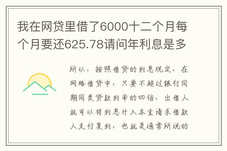 我在网贷里借了6000十二个月每个月要还625.78请问年利息是多少