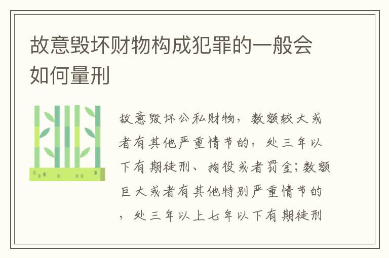 故意毁坏公私财物,数额较大或者有其他严重情节的,处三年以下有期徒刑、拘役或者罚金;数额巨大或者有其他特别严重情节的,处三年以上七年以下有期徒刑。