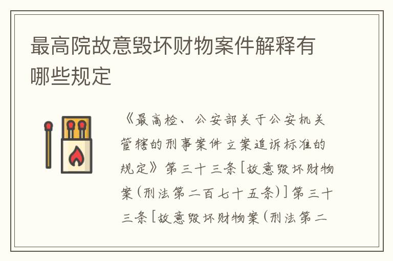 《最高检、公安部关于公安机关管辖的刑事案件立案追诉标准的规定》第三十三条[故意毁坏财物案(刑法第二百七十五条)]第三十三条[故意毁坏财物案(刑法第二百七十五条)]故意毁坏公私财物,涉嫌下列情形之一的,