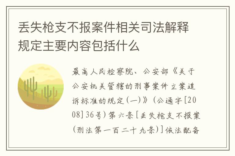 第六条 [丢失枪支不报案(刑法第一百二十九条)]依法配备公务用枪的人员,丢失枪支不及时报告,涉嫌下列情形之一的,应予立案追诉: