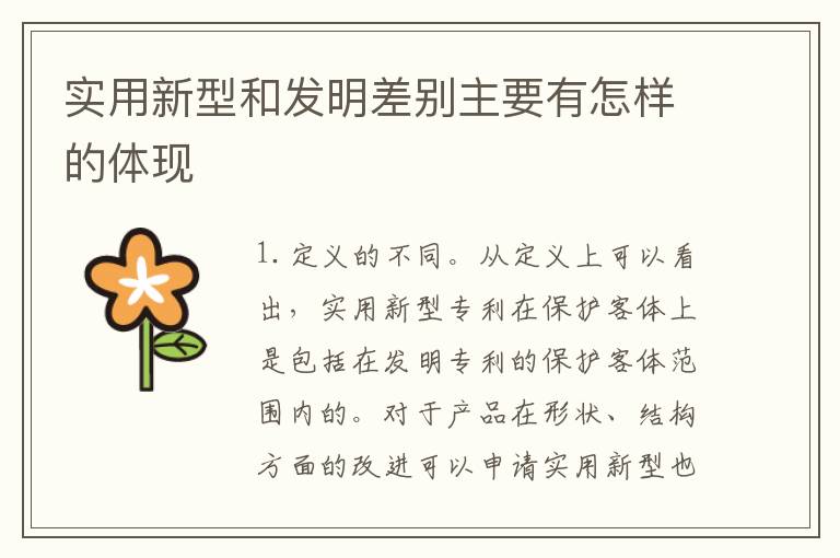 从定义上可以看出,实用新型专利在保护客体上是包括在发明专利的保护客体范围内的。对于产品在形状、结构方面的改进可以申请实用新型也可以申请发明,但对于方法类的或软件类的方案要申请发明专利,因为该方法类的或软件类的方案体现不出形状或结构的改变。
