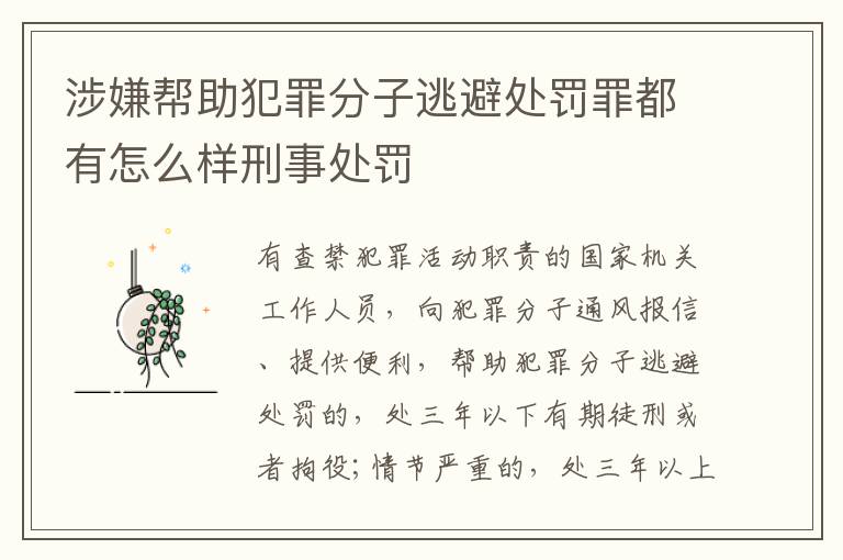 有查禁犯罪活动职责的国家机关工作人员,向犯罪分子通风报信、提供便利,帮助犯罪分子逃避处罚的,处三年以下有期徒刑或者拘役;情节严重的,处三年以上十年以下有期徒刑。