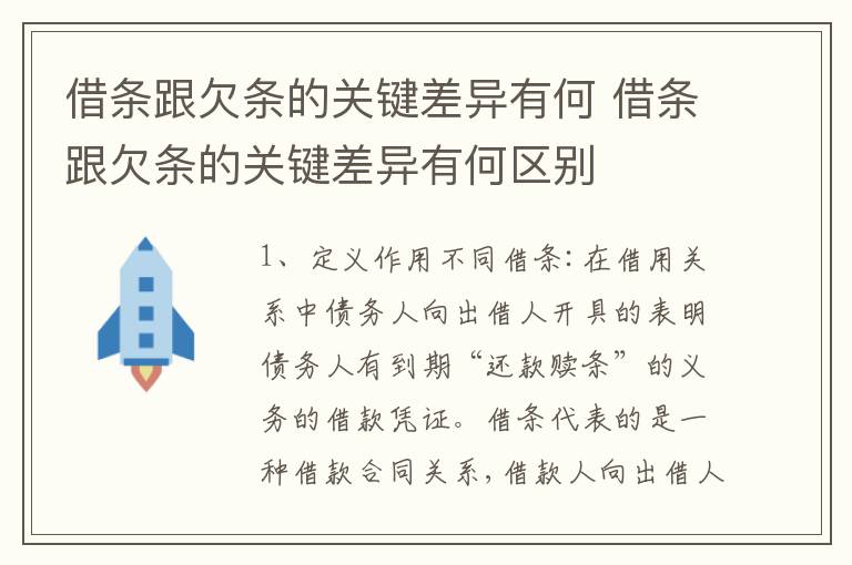借条:在借用关系中债务人向出借人开具的表明债务人有到期“还款赎条”的义务的借款凭证。借条代表的是一种借款合同关系,借款人向出借人借款,出借人给付借款。