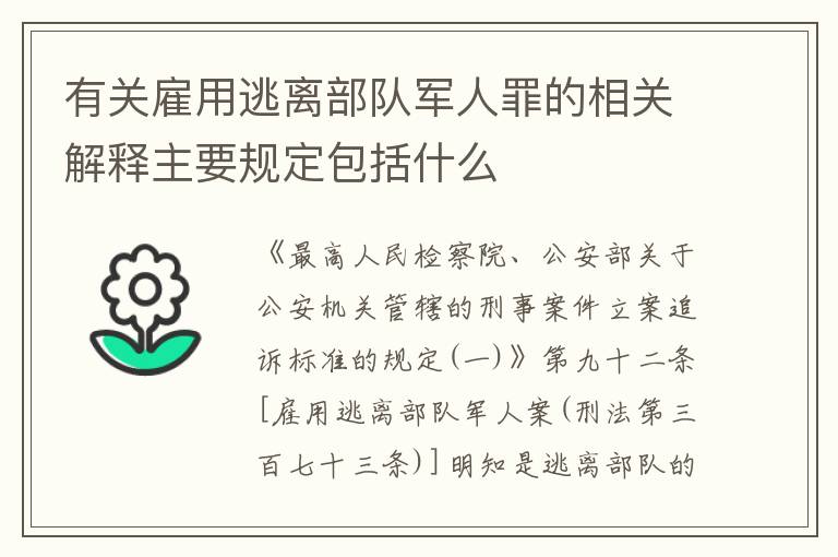第九十二条 [雇用逃离部队军人案(刑法第三百七十三条)]明知是逃离部队的军人而雇用,涉嫌下列情形之一的,应予立案追诉: