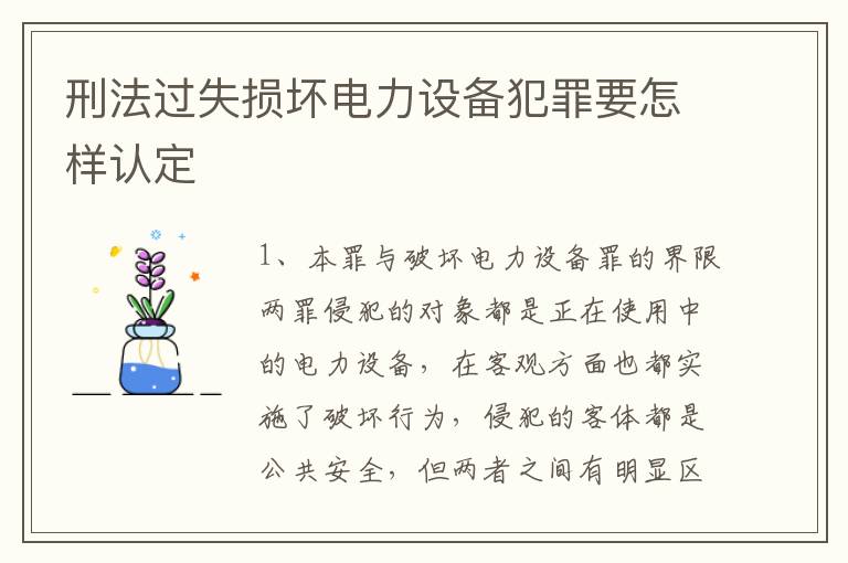 (1)主观罪过形式不同。破坏电力设备罪在主观方面是出自故意;过失损坏电力设备罪在主观方面则表现为过失。