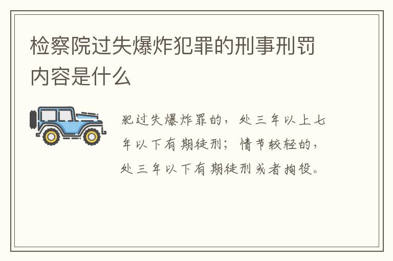 犯过失爆炸罪的,处三年以上七年以下有期徒刑;情节较轻的,处三年以下有期徒刑或者拘役。