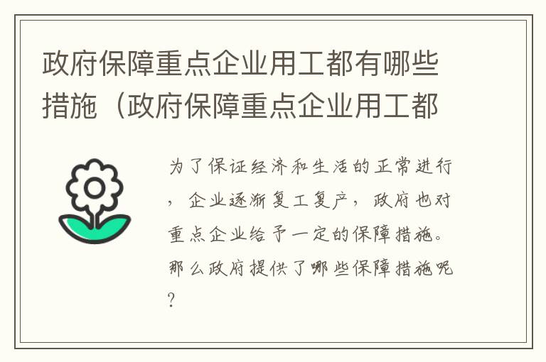 对于重点企业,人社部门建立了24小时用工调度保障机制。重点企业是指生产应对疫情使用的医用防护服、隔离服、医用及具有防护作用的民用口罩等重要医用物资企业,生产上述物资所需的重要原辅材料生产企业、重要设备制造企业和相关配套企业,生产重要生活必需品的骨干企业,重要医用物资收储企业,为应对疫情提供相关信息通讯设备和服务系统的企业以及承担上述物资运输、销售任务的企业。