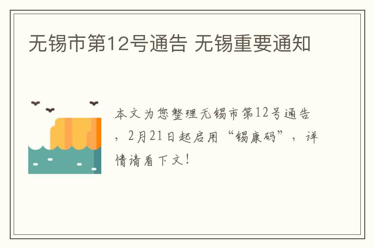 为迅速恢复全市经济社会秩序,同时进一步优化疫情精准防控措施,方便群众出行,更好地保障广大群众的健康和安全,在全市疫情防控期间,自2月21日起,在全市范围内启用“锡康码”。现将有关事项通告如下: