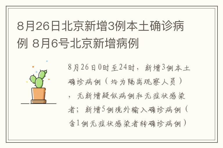 8月26日北京新增3例本土确诊病例(均为隔离观察人员)
