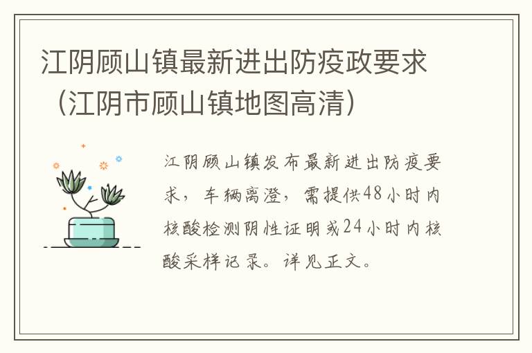 无锡市内通行的,提供行程码+苏康码+48小时核酸阴性证明;外市来澄的,提供行程码+苏康码+48小时核酸阴性证明+电子承诺书,入澄后按来(返)澄人员健康管理要求落实管控。