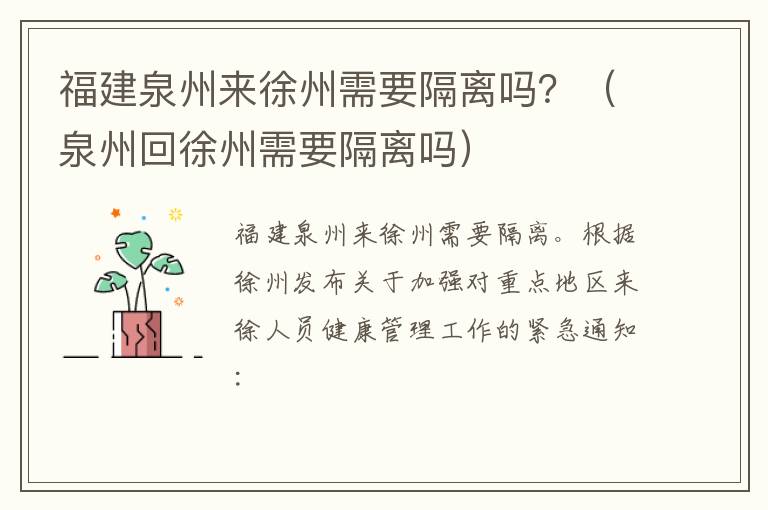 福建泉州来徐州需要隔离吗?