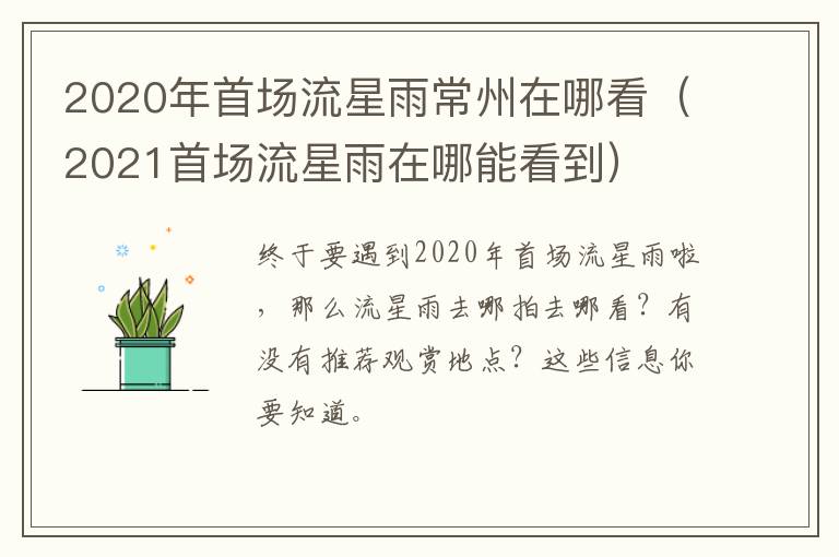2020年首场流星雨常州在哪看(2021首场流星雨在哪能看到)