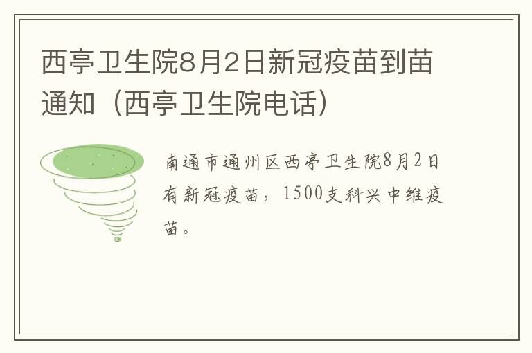 8月2日,西亭卫生院有1500支科兴中维疫苗。供第一、第二针接种,100支安徽智飞cho疫苗供第三针接种。无需排队,免预约。数量有限,请市民尽早前往。