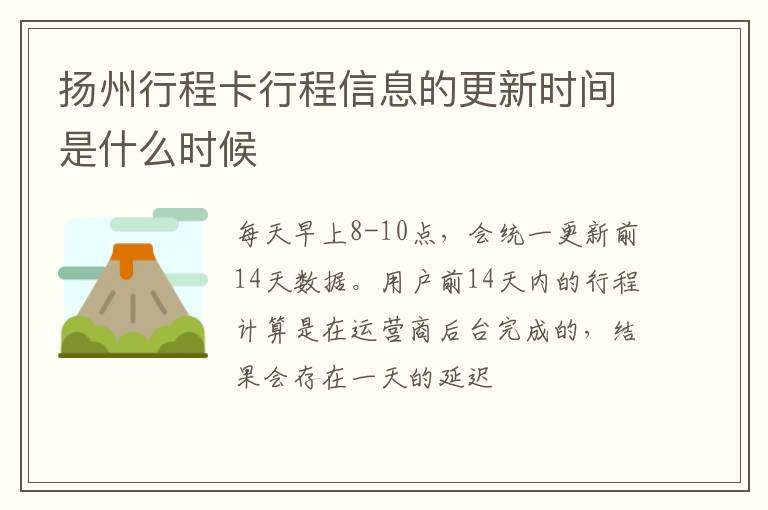 答:每天早上8-10点,会统一更新前14天数据。用户前14天内的行程计算是在运营商后台完成的,结果会存在一天的延迟,比如9月15日计算的是9月15日之前14天内的行程数据(9月1日0点-9月14日24点之间)。