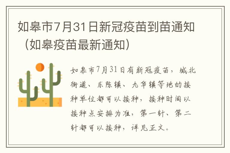 一、如皋市7月31日接种单位接种安排