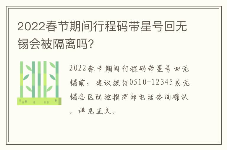 根据小编1月11咨询官方所得解答:由于疫情防控政策动态调整,春节期间行程码带星号的返锡人员,建议出行前可以先咨询0510-12345或无锡各区防控指挥部电话咨询确认。