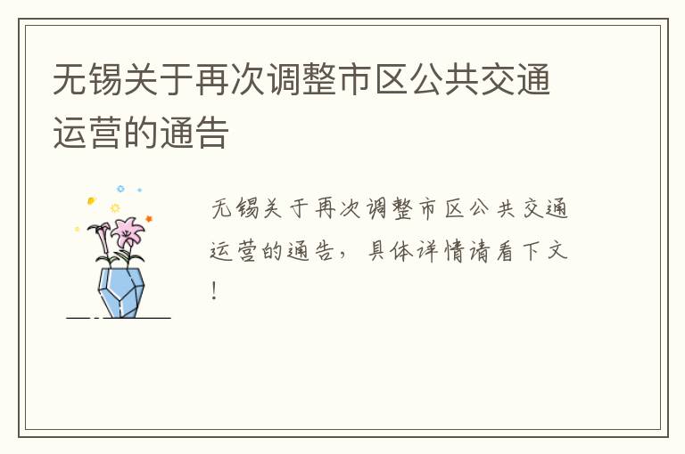 无锡关于再次调整市区公共交通运营的通告