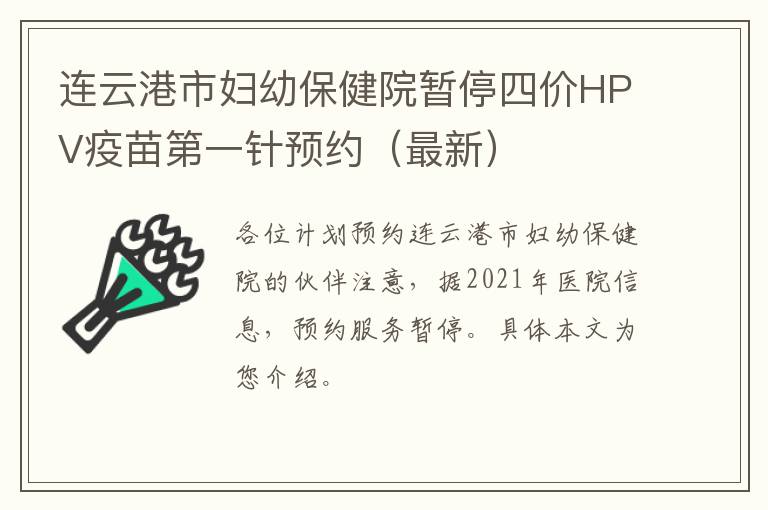 据连云港市妇幼保健院2021年12月18日发布信息,为了不让各位市民朋友错过四价疫苗的接种时间,医院决定即日起,暂停四价第一针预约服务。