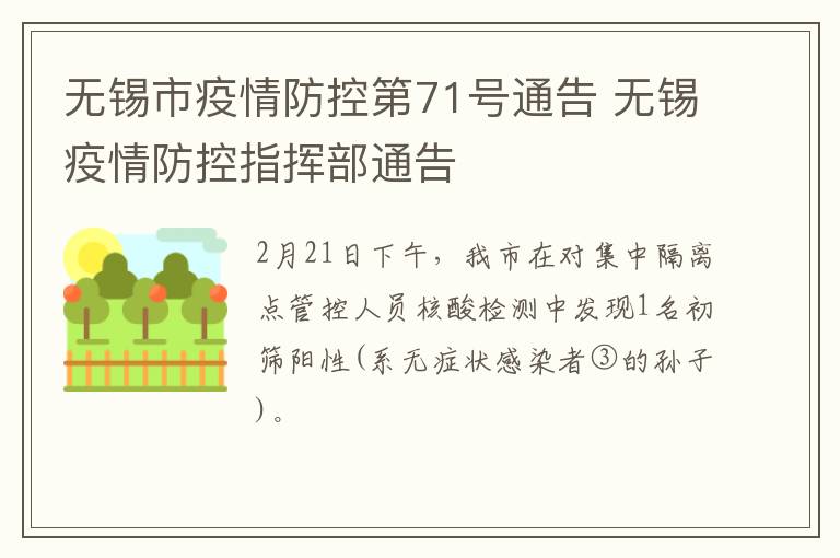根据无锡发布 2022-02-22 07:28《无锡市疫情防控第71号通告》