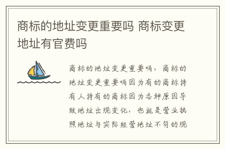 商标的地址变更重要吗?因为有的商标持有人持有的商标因为各种原因导致地址出现变化,也就是营业执照地址与实际经营地址不符的现象,导致商标地址变更不及时而被撤销商标拥有资格。所以说商标变更地址是非常重要的。