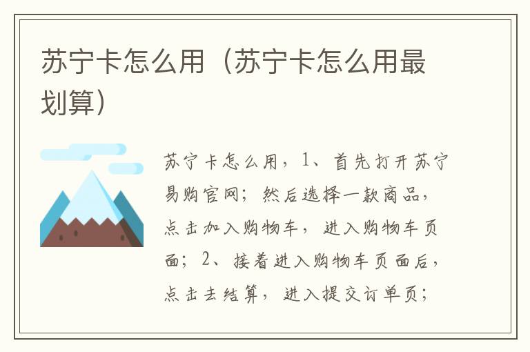 苏宁卡怎么用(苏宁卡怎么用最划算)