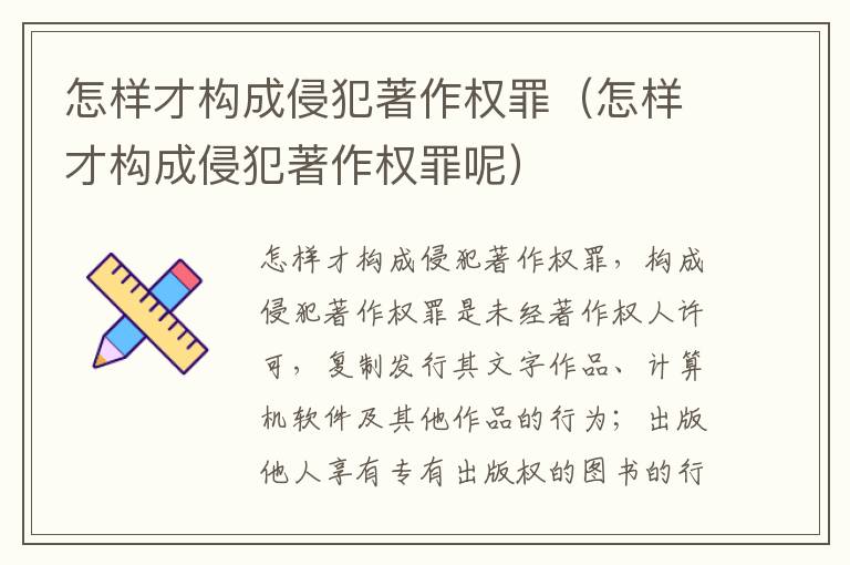 侵犯著作权罪是指以营利为目的,违反著作管理法规,未经著作权人许可,侵犯他人的著作权,违法所得数额较大或者有其他严重情节的行为。怎样才构成侵犯著作权罪?