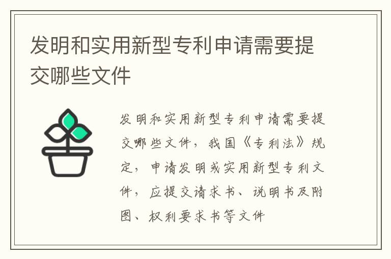 我们知道在发明专利的时候通常还有一种是实用新型专利。实用新型专利又称小发明或小专利,是专利法保护的对象,是指依法应授予专利权的实用新型。那么发明和实用新型专利申请需要提交哪些文件?