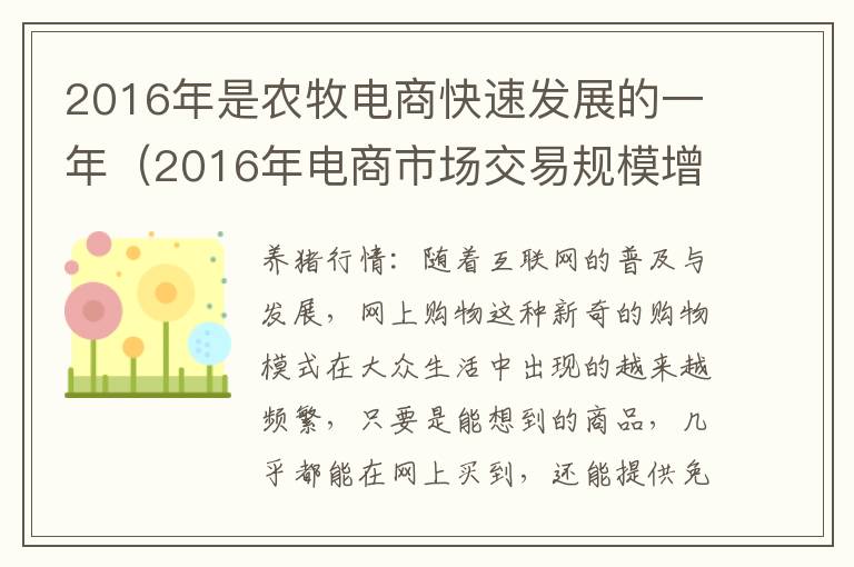 2015年是农牧电商崛起的一年,2016年则是农牧电商快速发展的一年,虽然农牧电商现存在机制不尽善,功能不齐全,用户活跃量不足,客户资源缺乏等问题,但是每个产业的发展前进都会濒临这样的阵痛期,而且农牧电商一定是未来畜牧业行业发展不可或缺的一部分,惟独逐渐改进自身现有的不足,耐心布局、细心思索,农牧行业电商才干迎来大的发展。(养猪人必看)