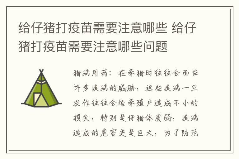 在养猪时往往会濒临许多疾病的威胁,这些疾病一旦发作往往会赠养殖户造成不小的损失,尤其是仔猪体质弱,疾病造成的危害更是硕大,为了防御一些传染性强、危害大的疾病,许多人会采用打疫苗的方式来进行免疫,不过在注射疫苗时要是犯了错往往会导致免疫效果降低甚至失效,那么赠仔猪打疫苗时有哪些问题需要注意呢?