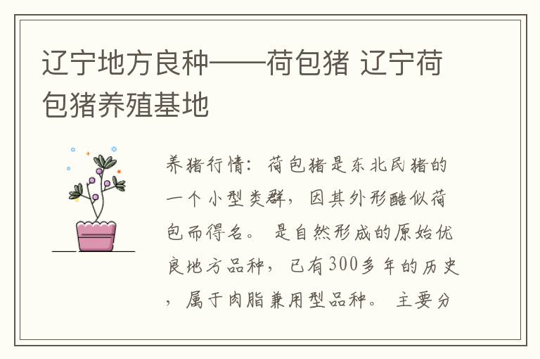 荷包猪是东北民猪的一个小型类群,因其外形酷似“荷包”而得名。