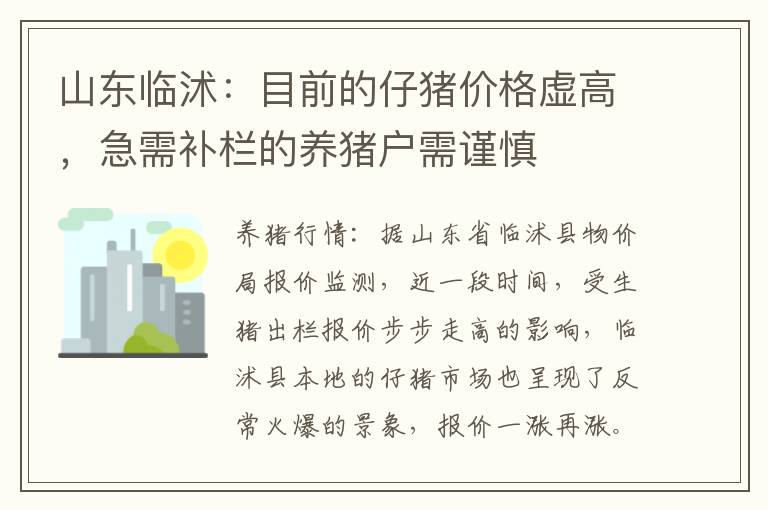 临沭县物价局以为,鉴于当前的仔猪报价虚高,急需补栏的养猪户必定要谨慎从事。