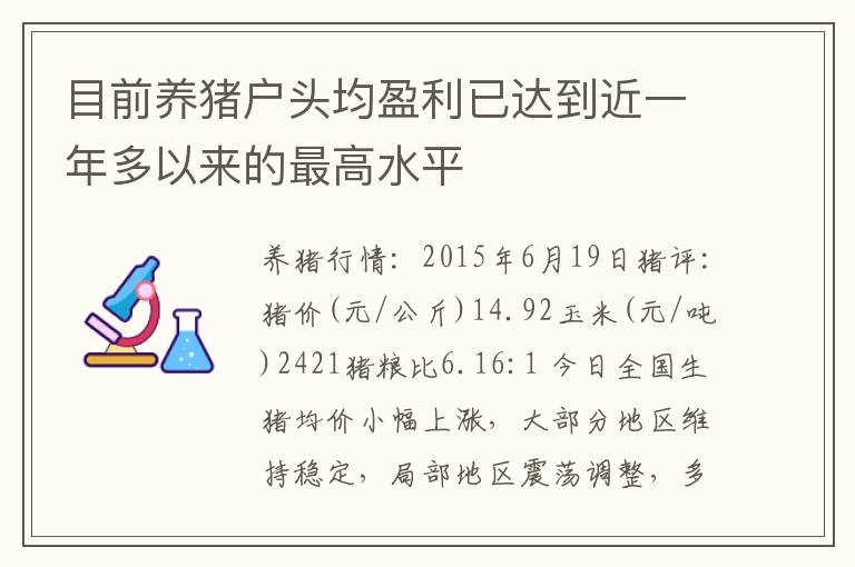 目前养殖户头均盈利已达到近一年多以来的最高水平。提醒大家注意饲养管理和疫病预防。