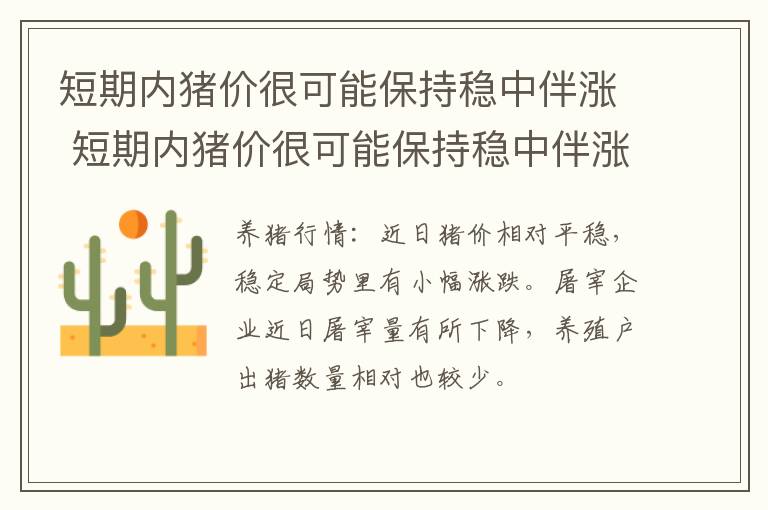 近日猪价相对平衡,稳定局势里有小幅涨跌。屠宰企业近日屠宰量有所下降,养殖户出猪数量相对也较少。经过这几天的供需博弈,生猪价格走势持续归调幅度已经减缓,趋稳地区增多,而且小幅上涨的地区开始增多。而且短期来瞧,生猪价格保持稳中伴涨的概率较大一点。