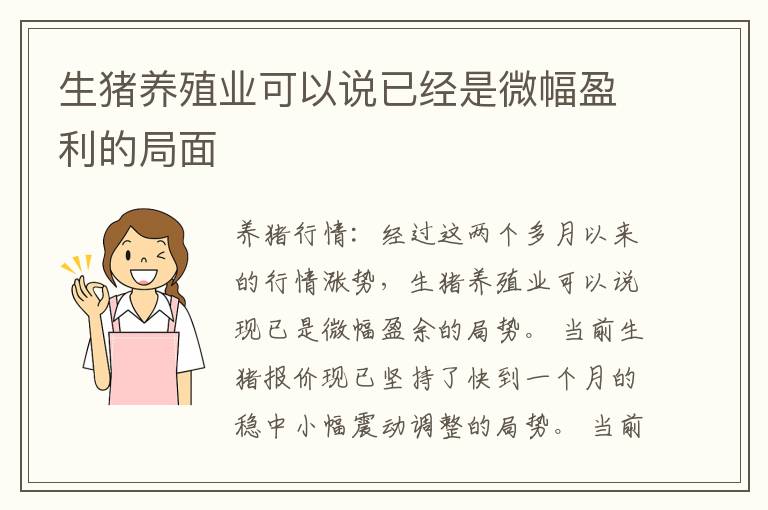 经过这两个多月以来的行情涨势,生猪养殖业可以说现已是微幅盈余的局势。