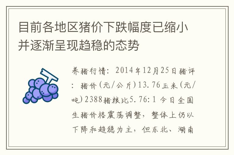 2014年12月25日猪评:猪价(元/公斤)13.76玉米(元/吨)2388猪粮比5.76:1