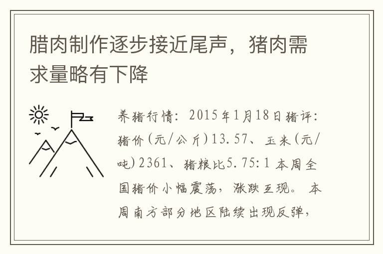 腊肉制作逐步接近尾声,猪肉需求量略有下降。