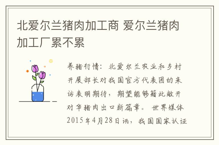 世界媒体2015年4月28日讯,我国国家认证认可监督管理委员会(CNCA)本周对北爱尔兰进行了拜访,并对北爱尔兰的猪肉出口加工厂进行了评价。