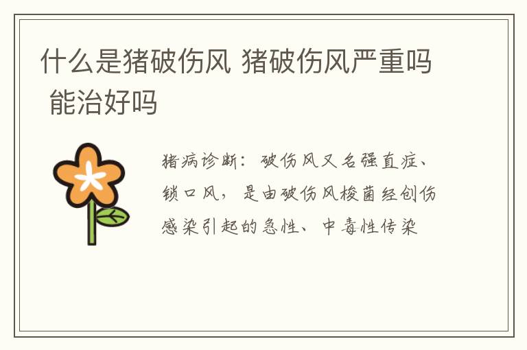 什么是猪破伤风 猪破伤风严重吗 能治好吗