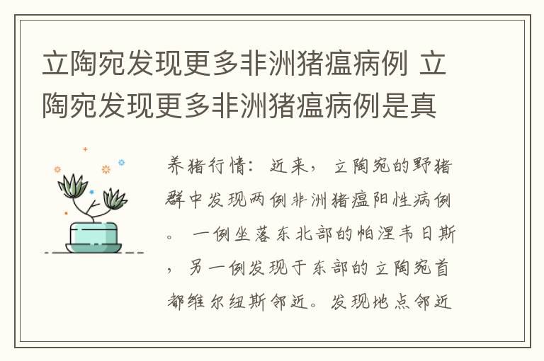 立陶宛发现更多非洲猪瘟病例 立陶宛发现更多非洲猪瘟病例是真的吗
