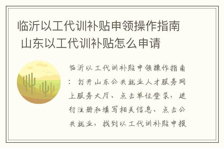 企业稳岗扩岗专项支持计划-以工代训补贴申领操作指南