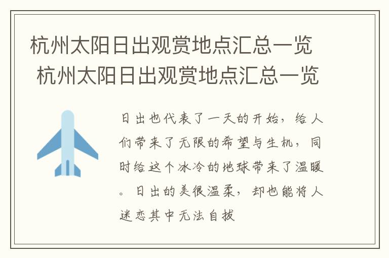 天气预报:杭州气象局,还是看杭州本地的天气预报较为准确,一定要查天气,晴朗才好去看日出,乌云天就不建议去观赏日出了!