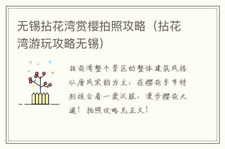 1、3月中下旬,是拈花湾樱花的盛放期,大约持续一周左右。
