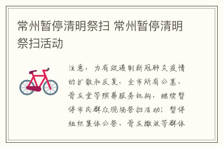 一、倡导网上祭扫。可进入“我的常州”APP链接“智慧民政”或关注微信公众号“常州民政”、“96444白事好帮手”,进入“泊爱堂”,向逝者献花、祈福等方式寄托哀思。