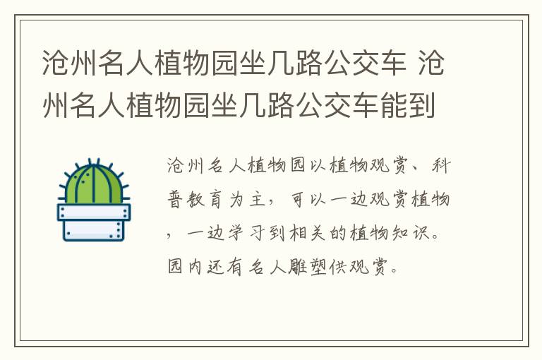 沧州名人植物园坐几路公交车 沧州名人植物园坐几路公交车能到