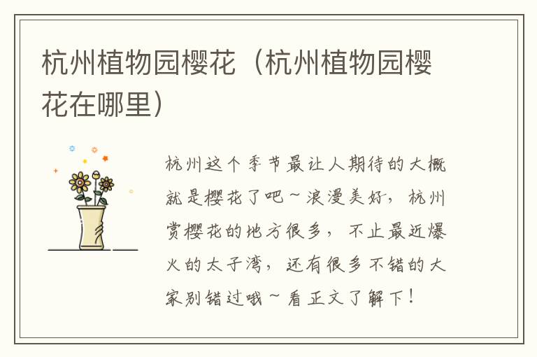 偌大的杭州植物园,梅花、桃花、迎春花、樱花样样俱全,可是去哪个专类园看樱花最好呢?那自然要去水生植物区逛一逛啦。