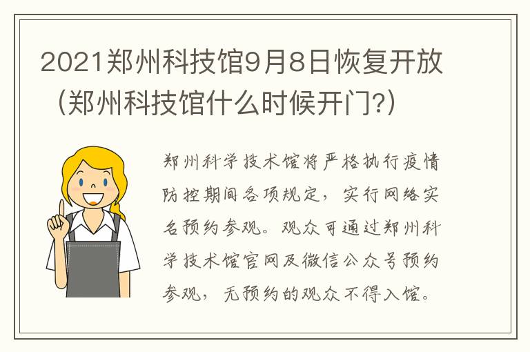 结合当前疫情防控形势,郑州科学技术馆经报上级主管部门同意,将于9月8日(周三)起有序恢复开放(暂不接受团体参观)。感谢社会各界的关注和支持,欢迎观众朋友们来馆参观!