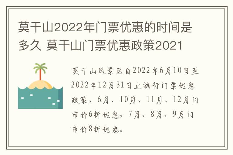 2022莫干山门票优惠时间
